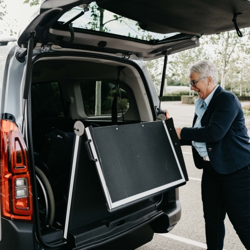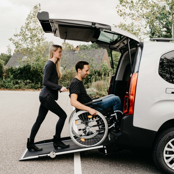 berlingo rampa con utentiE’ inoltre disponibile la versione “rampa taxi” che, ripiegandosi verso l’interno (quando il passeggero disabile non è a bordo), consente di ripristinare il piano di appoggio creando nuovamente spazio per eventuali bagagli.