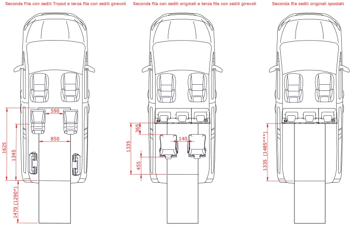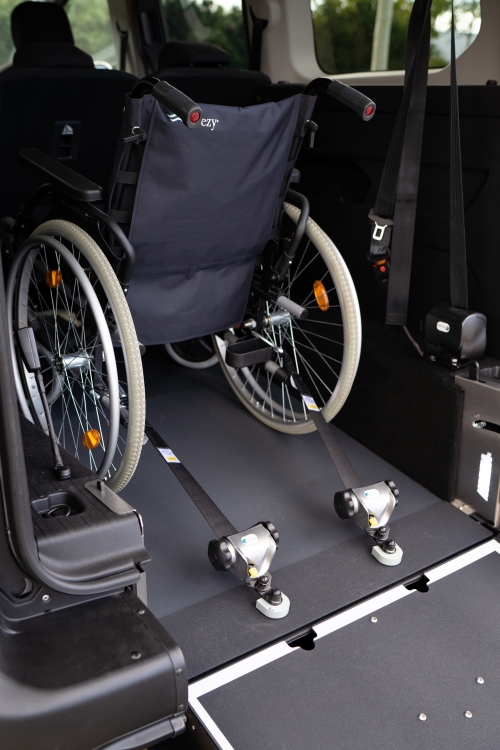 Il kit Piano Ribassato Tripod, utilizzato per la trasformazione, rende la vettura estremamente confortevole e sicura per la persona su sedia a rotelle e per gli altri passeggeri.