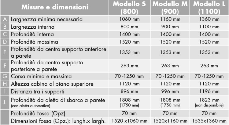 Peso elevatore: 200 kg (250 kg nel modello L)
