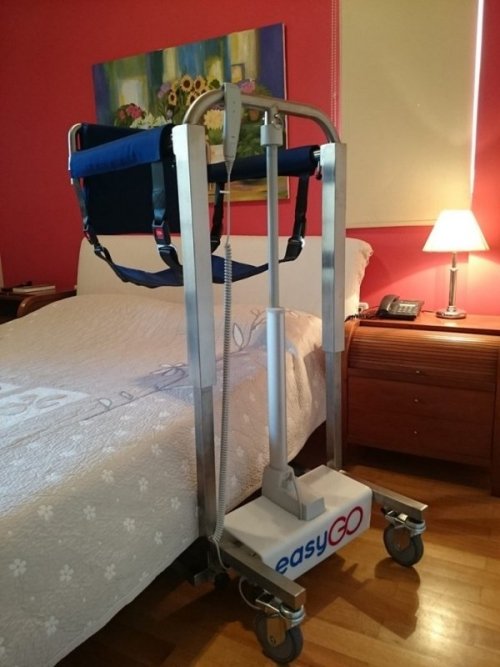 EasyGo è il sollevatore elettrico che aiuta nei piccoli trasferimenti le persone disabili e anziane, con problematiche motorie.