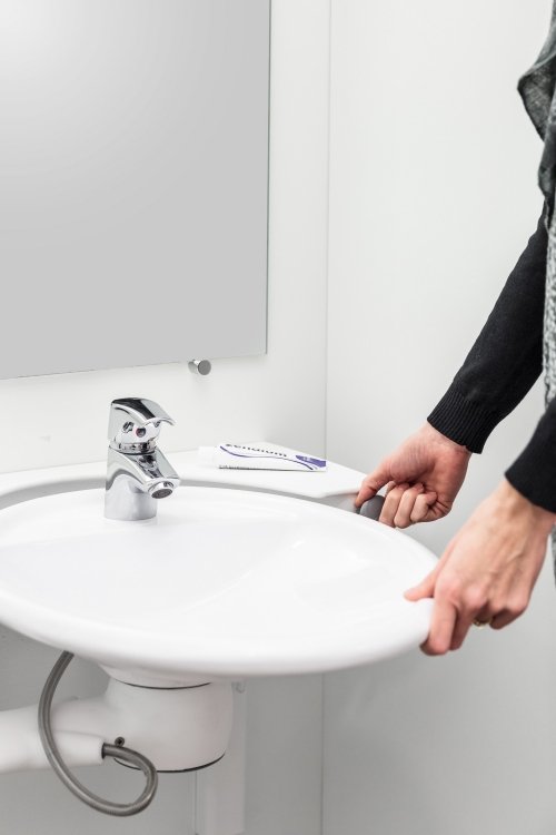 Grazie alla possibilità di avvicinarlo e allontanarlo, questo lavabo regolabile viene incontro in particolare alle esigenze di gestione dello spazio dell’utente in carrozzina, che necessita di un’area di manovra talvolta trascurata da una progettazione poco attenta alla accessibilità,.