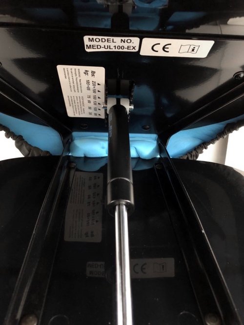 A movimentare il cuscino è un pistone oleodinamico, la cui “forza” di spinta o di accompagnamento alla seduta è regolata in base al peso della persona. Questa regolazione avviene semplicemente posizionando il pistone nelle diverse asole (ognuna delle quali legata ad un range di peso) disponibili sotto il sedile.