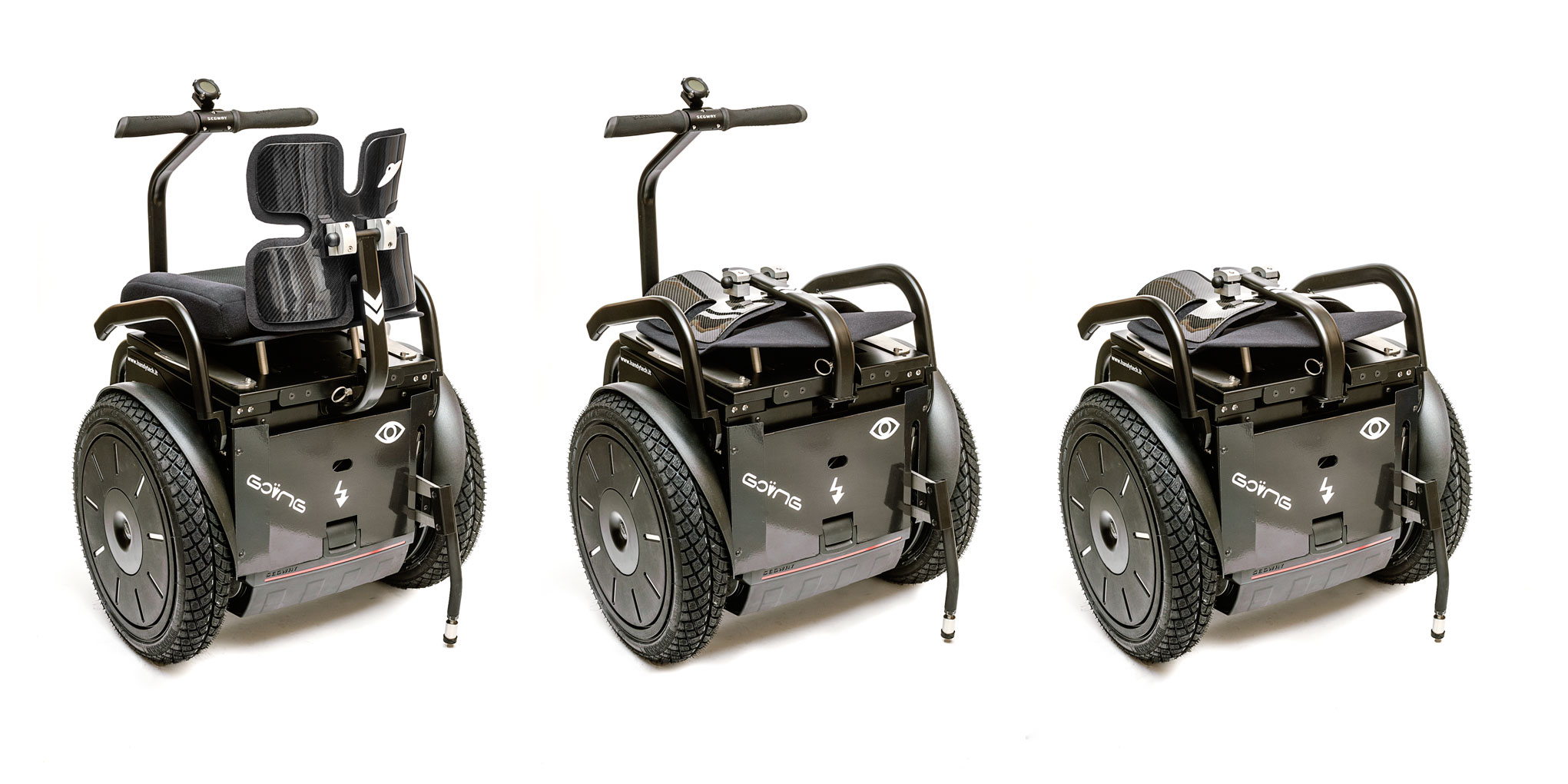 Si tratta di una inedita soluzione di mobilità per persone con disabilità motoria, che permette di spostarsi su terreni anche i più impervi, per diversi chilometri, anche di sera o di notte, grazie al suo sistema di illuminazione. Connubio tra tecnologia elettronica più evoluta e meccanica più avanzata, Going supera il concetto tradizionale di carrozzina, per offrire una mobilità nuova, ecologica e per tutti.