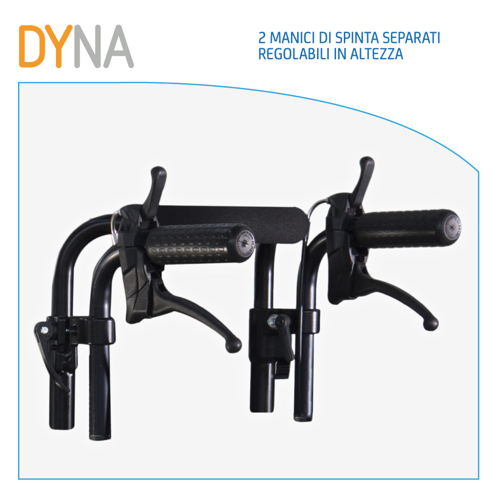 Dyna è una carrozzina manuale estremamente versatile adatta soprattutto a persone con patologie molto severe. Il basculamento di 45° agisce sensibilmente sulla qualità di vita dell’utente migliorando il suo stato di salute, con benefici sia alla respirazione che alla circolazione.