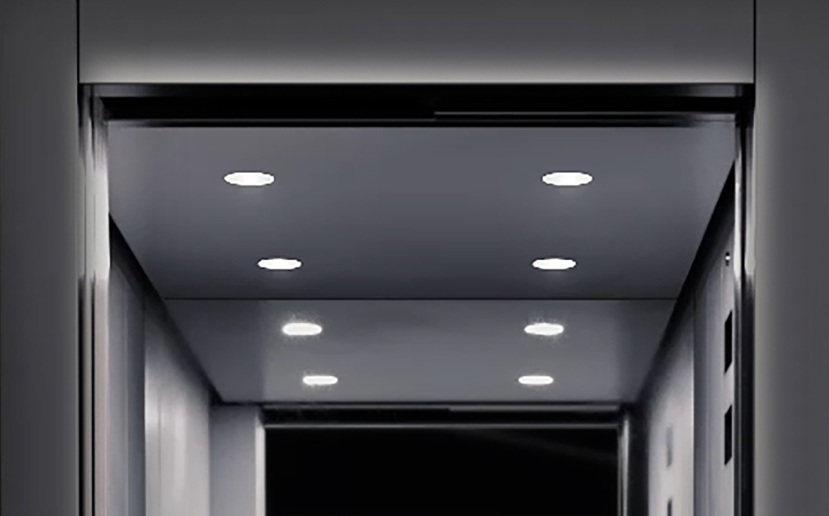 Le bottoniere di cabina sono integrate nella parete e sono personalizzabili nei materiali e nei colori. Le pulsantiere di piano sono incorporate nel montante della porta.
