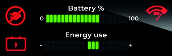Armonico Elettrico di KONE Motus è dotato di display smart che consente di monitorare in tempo reale l’energia generata dall’impianto durante l’utilizzo e il livello di carica delle batterie. Sul display è possibile visualizzare le icone di sovraccarico, di avviso di batteria scarica o di assenza di tensione di rete.