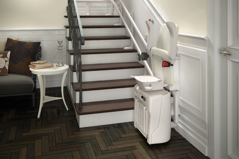 Il problema dell’ingombro sulla scala è completamente eliminato perchè pedana, sedile e braccioli della poltroncina sono completamente ripiegabili. Il sedile e la pedana si chiudono e aprono insieme con un unico dolce movimento.